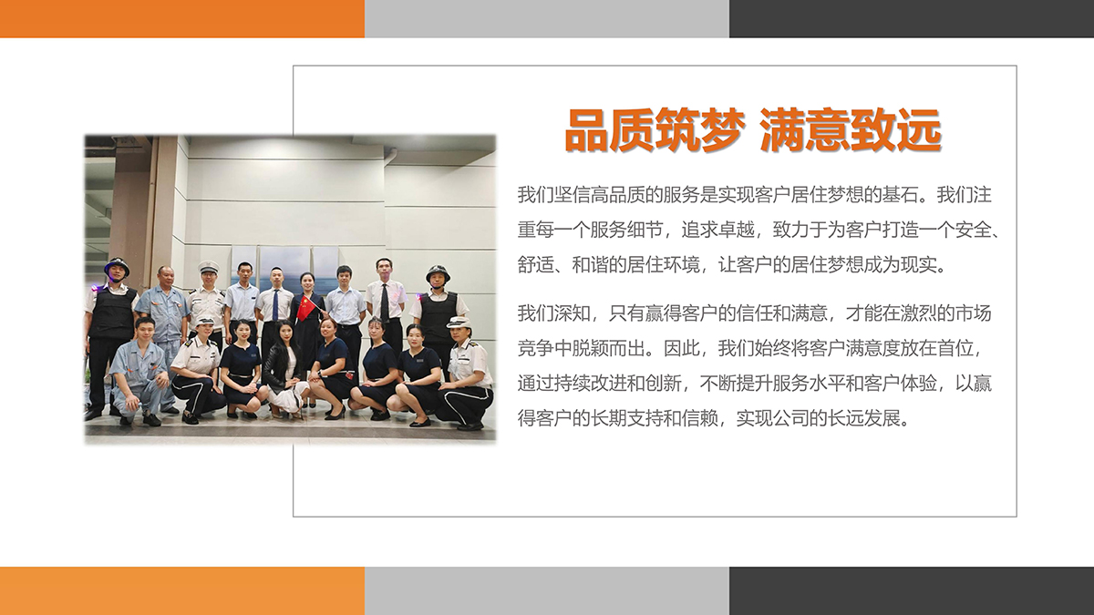 鑫永物业成立于2008年,自成立以来,公司始终秉承“以优质服务创建一流品牌,以一流品牌促进企业发展”的服务宗旨,坚守“客户的承诺、卓越的品质、真诚与善待、创新与发展”的核心价值观。经过多年的发展,公司逐渐形成了“乐享生活之美”的企业文化理念。